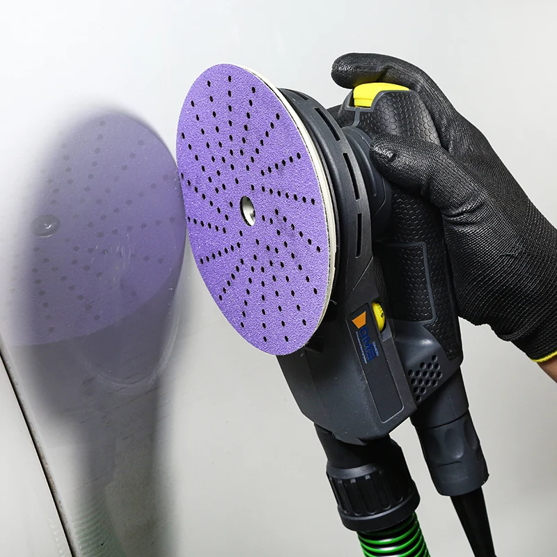 Vijolični keramični film Q22T uporablja prožno, a na trganje odporno podlago filma, ki je gladka in močna. Ima odlično odpornost na trganje, zato je manj verjetno, da se bodo robovi zlomili med brušenjem, kar omogoča bolj zvezen in gladek proces brušenja. Ponujamo vam različne oblike in velikosti zaslonk, med katerimi lahko izbirate, kar učinkovito izboljša učinkovitost odstranjevanja prahu in znatno zmanjša ostanke prahu. Manj prahu pomaga ustvariti čistejše in bolj zdravo delovno okolje.